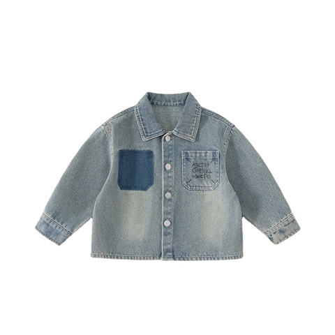 Enfants automne nouvelle veste en jean pour enfants rétro couleur bloquant moyen enfant à manches longues revers garçons chemise