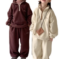 2025 automne et hiver nouveaux enfants broderie survêtement ensemble fermeture éclair tricot col montant pull pantalon brossé polaire ensemble décontracté
