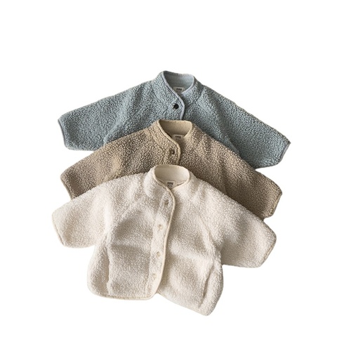 Vente en Gros de Laine d'Agneau de Couleur Unie Plus Velours Épais Ample Garçons Filles en Automne Hiver Manteau Polaire pour Garçons Outwears Bébé Garçon Manteaux